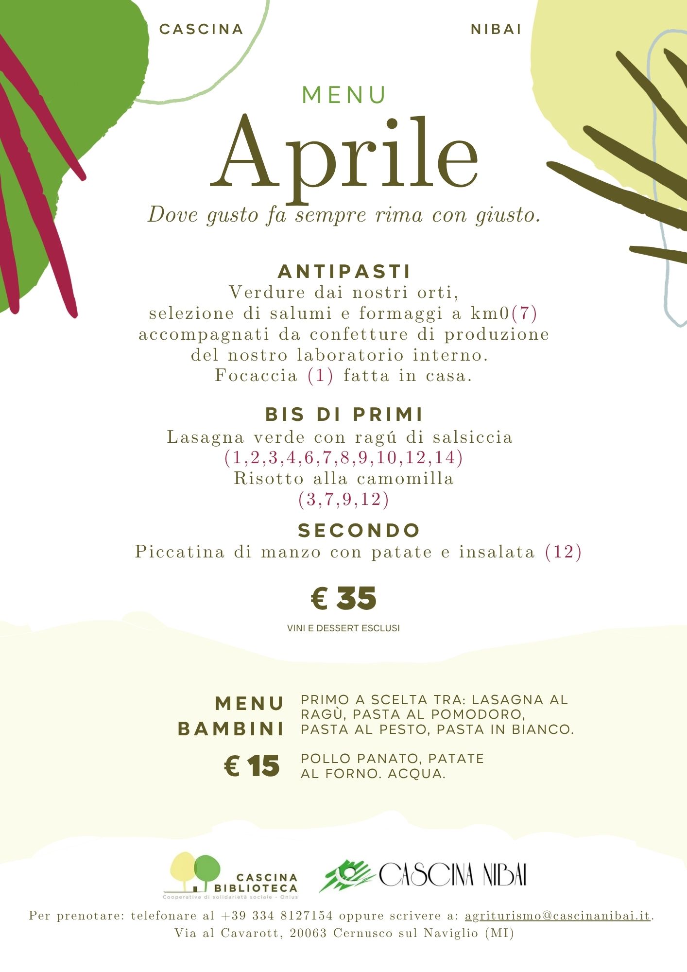 agriturismo@cascinanibai.it oppure telefonare al